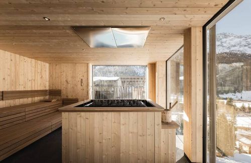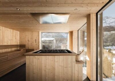 Eine großzügige Wellness- und Wasserwelt mit Innenpool, Sauna-Bereichen, Adults-Only SkyPool und Outdoor-Jacuzzis lockt mit Wohlbefinden und Alpinsicht direkt über den Dächern.